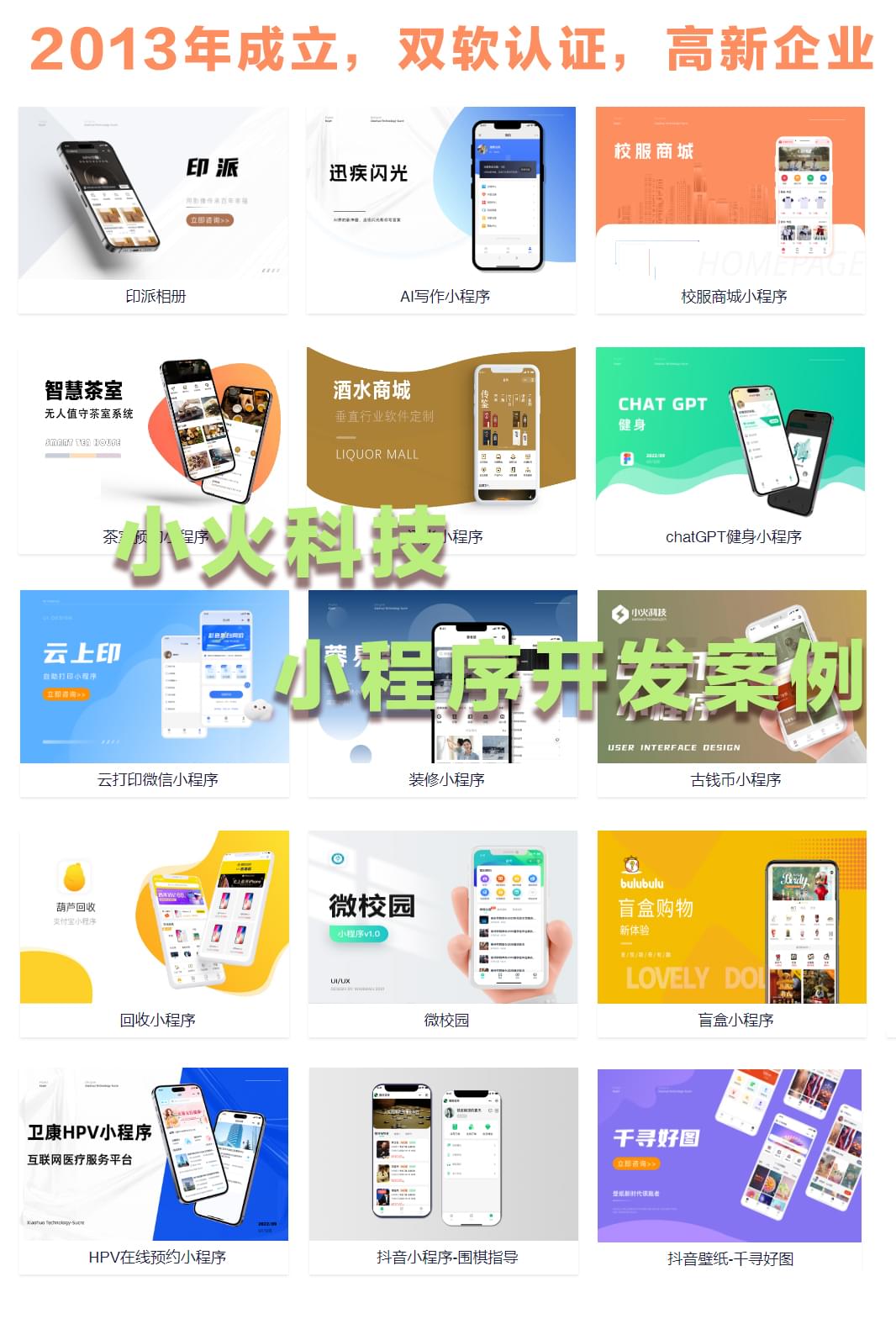 9.小程序开发公司推荐:小火科技作为一家专业的小程序和APP手机软件开发公司,从2013年以来,一直在从事相关软件的开发制作公司,公司拥有成熟的开发团队,分工明确,搭配科学。从项目最初的立项开始,到后期的运维,全程拥有专业化的团队负责。之前看过小编文章的小伙伴都知道,小程序的可信度是非常高的,同时小程序可以实现基于web框架的几乎所有能够,通过定制开发,能够实现强大的功能。有关小程序的开发制作,以及小程序的备案相关问题,请咨询小火科技。