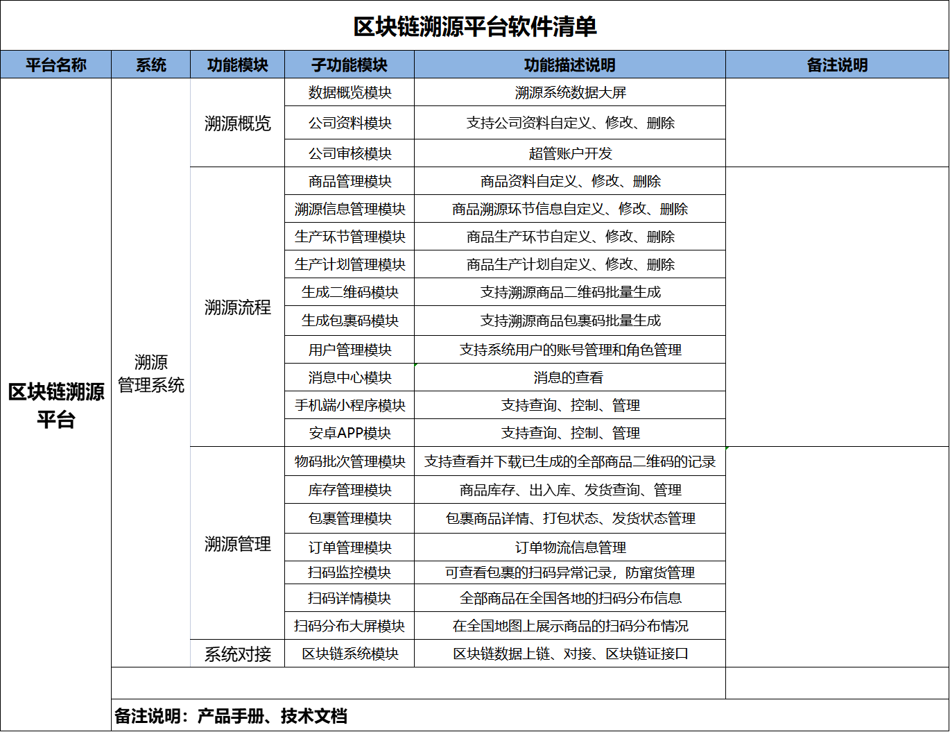下面我们来看一下这套区块链溯源管理系统的功能清单!有关区块链应用软件的开发制作,请联系小火科技。