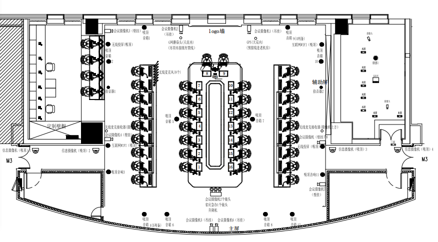 大厅所有席位均配备专业会议话筒和液晶屏升降系统,通过无纸化会议系统,可以控制所有液晶屏和话筒的升降,既提升了应急指挥的效率,又节约桌面的空间。实现会议系统会前、会中、会后所有功能的后台操作,与会各部门可进行实时的会商和有效的信息沟通,改变了传统会议模式的效率低、形式单一、资源浪费、保密隐患等问题。
